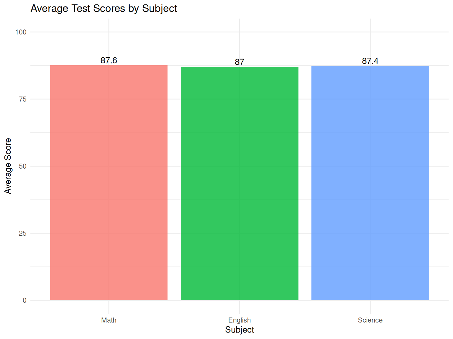 p1This chart immediately shows us that Bob has the highest grade (92) and Charlie has the lowest (78). Visualizations like this make patterns in data much easier to spot than looking at numbers alone.