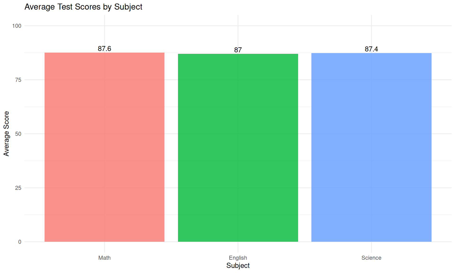 labs(title = "Average Test Scores by Subject", x = "Subject", y = "Average Score") +
