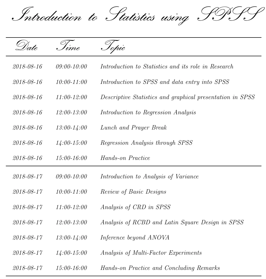 Workshop on Applied Multivariate Statistical Techniques Using Different Statistical Packages