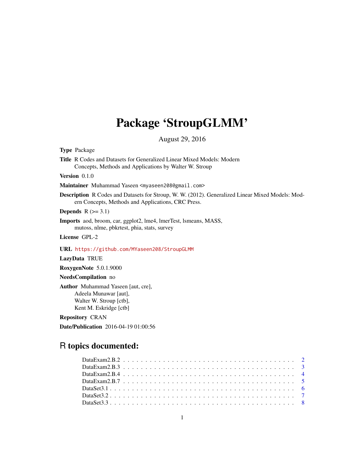 StroupGLMM: R Codes and Datasets for Generalized Linear Mixed Models: Modern Concepts, Methods and Applications by Walter W. Stroup